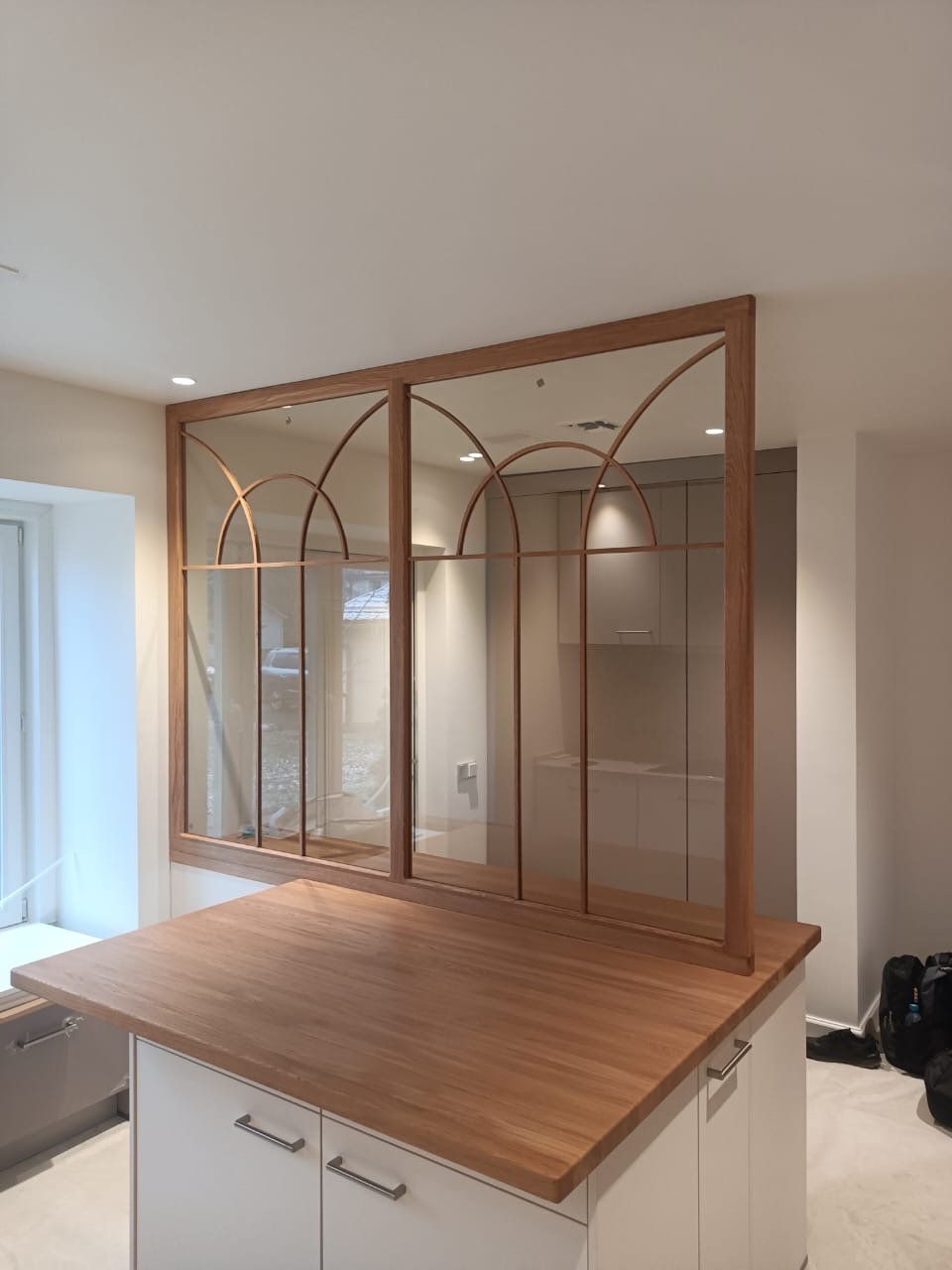 Для клиента была изготовлена столешница из дуба и витраж в обрамлении из дерева. Испозовалось закаленное стекло толщиной 6 мм. Заказчик остался доволен результатом — изящная конструкция стала не только практичной, но и настоящим украшением дома. Высокое качество работы подтверждено гарантией